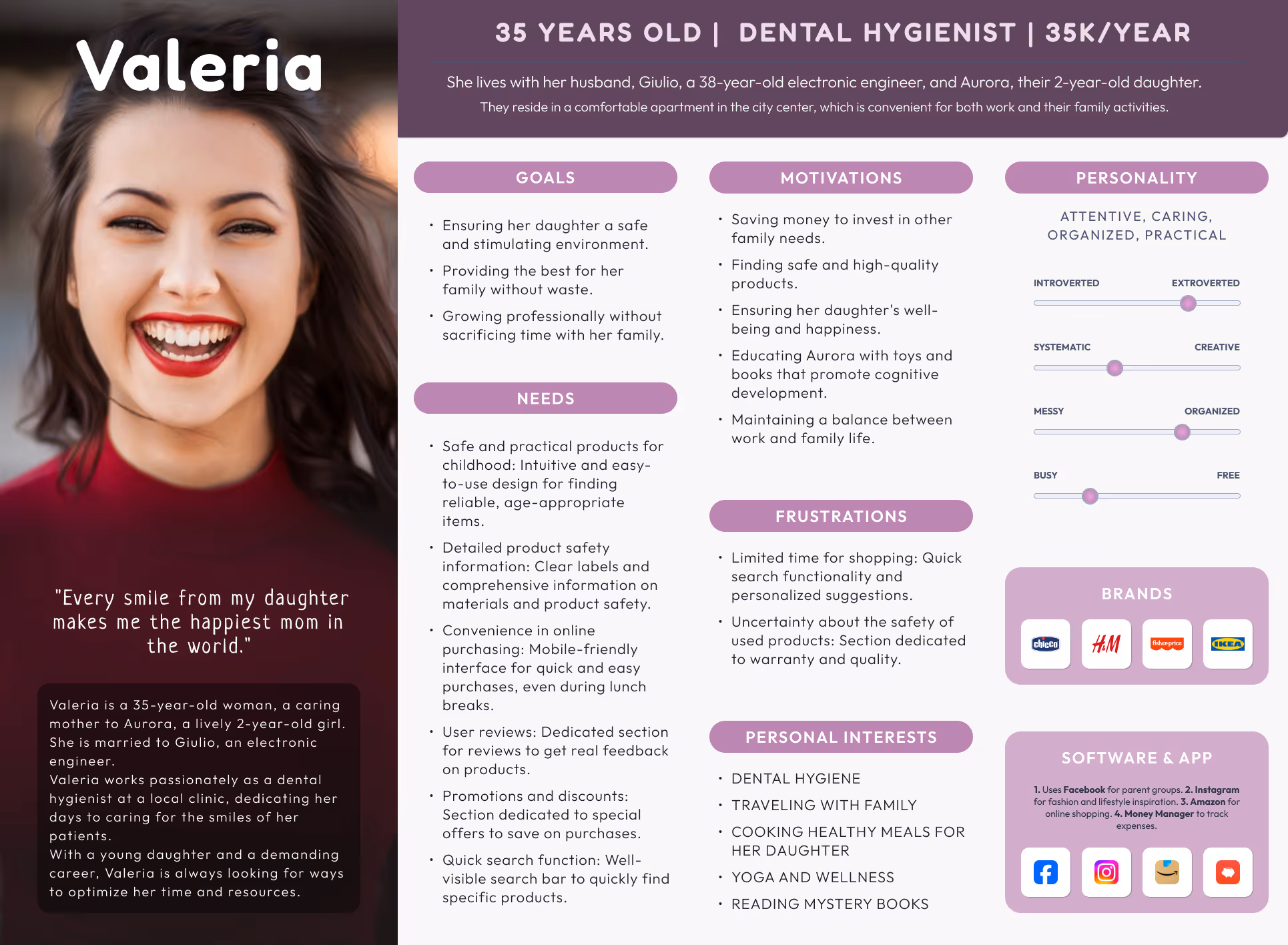 From Valeria’s quest for safe, time-saving purchases, to Massimo’s love for quality and innovation, Paolo’s dedication to his newborn daughter’s well-being, and Martina’s drive to offer her daughter the best — these stories shaped every design decision that followed.