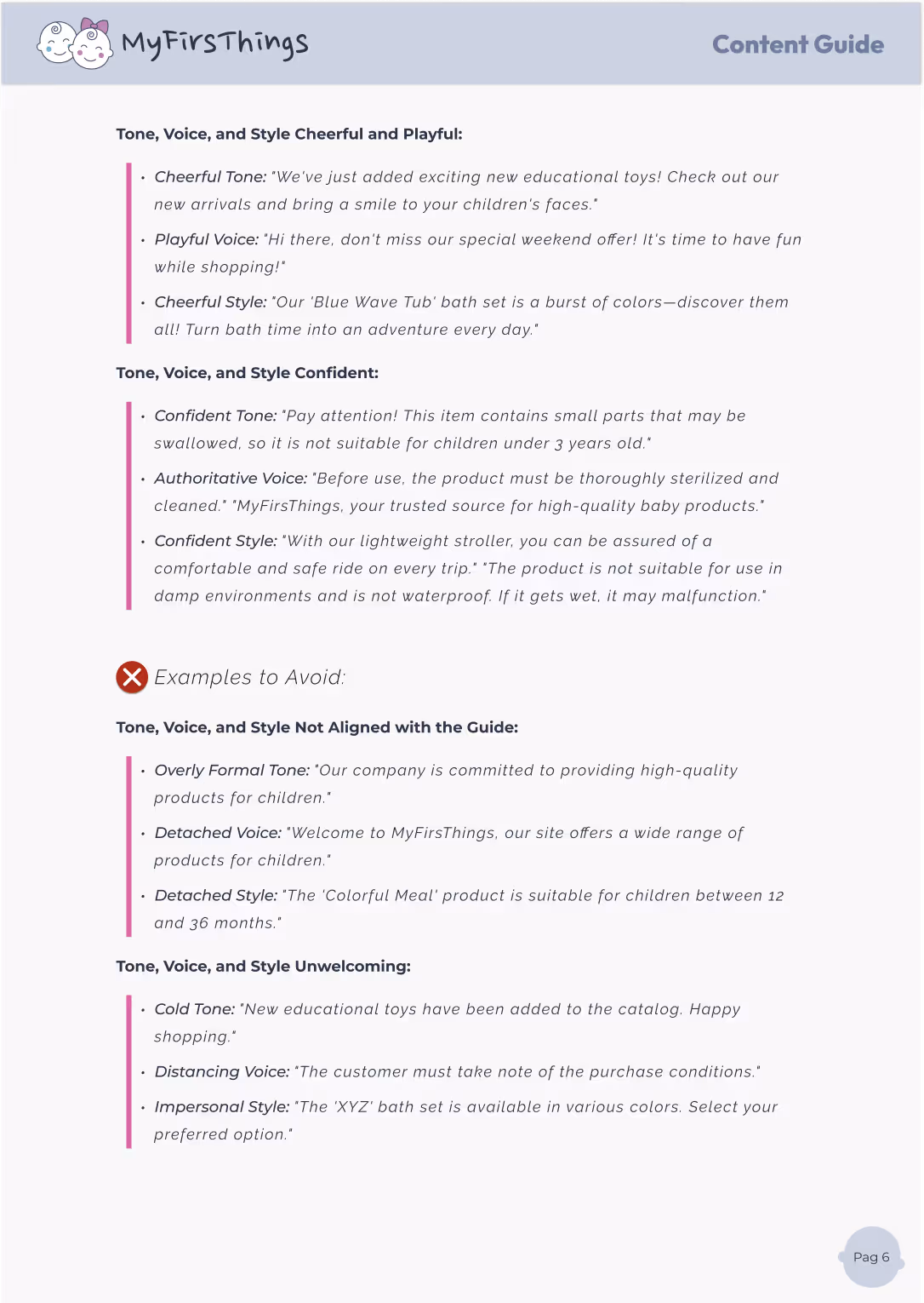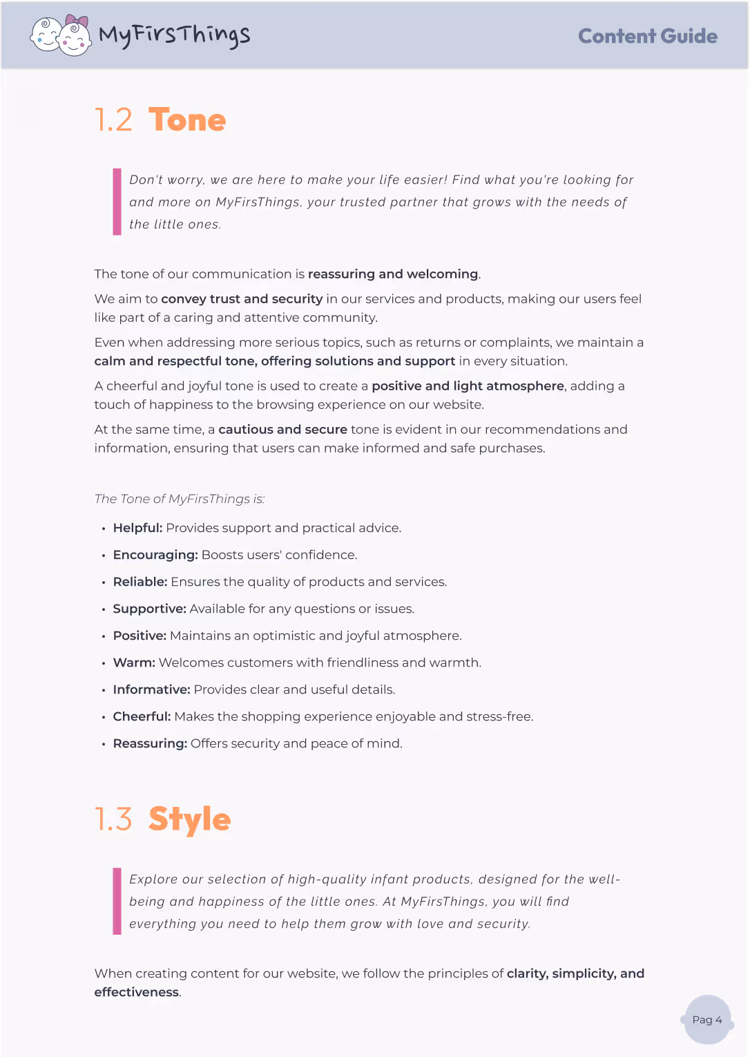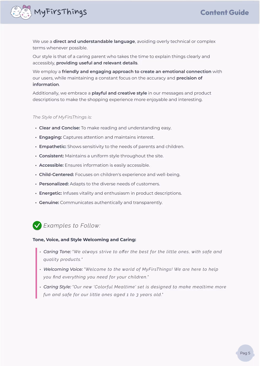 Words matter — especially when you're speaking to parents making decisions for their children. That’s why I created a Content Guide that helps MyFirsThings communicate in a voice that’s clear, helpful, and human.
